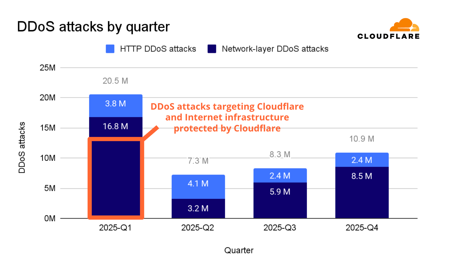 Welcome to the 24th edition of Cloudflare’s Quarterly DDoS Threat Report. In this report, Cloudforce One offers a comprehensive analysis of the evolving threat landscape of Distributed Denial of Service (DDoS) attacks based on data from the Cloudflare network. In this edition, we focus on the fourth quarter of 2025, as well as share overall 2025 data.